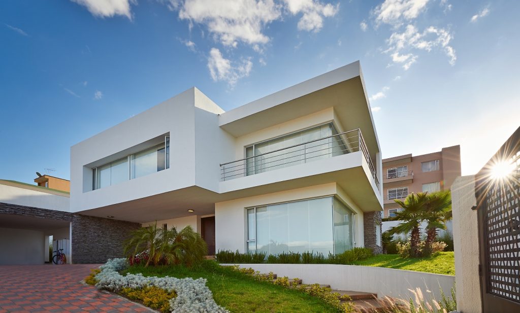 Moderner Design Ihres Hauses mit Fenstram Glasgeländer.