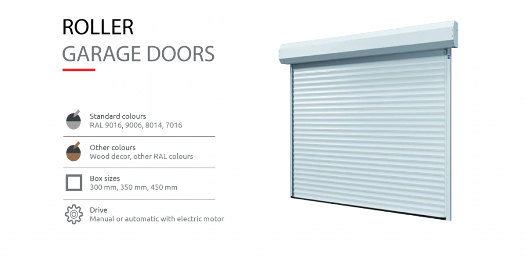Roller doors and roller ceiling garage doors open vertically and do not require any space in the garage. Thanks to this construction, they offer maximum space inside and in front of the garage. The shape of the garage opening does not play any role during installation, whether it is rectangular, slanted, with a segmental or semicircular vault.
